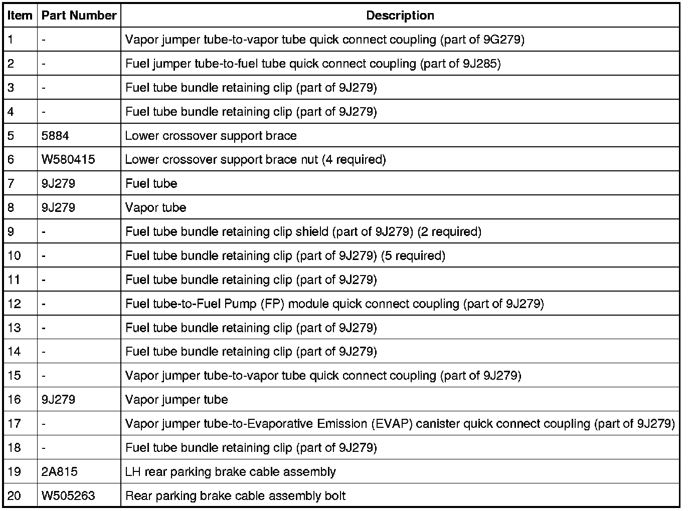 12. Release the fuel tube bundle retaining clips and remove the fuel and vapor tubes.