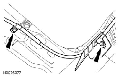 Remove the 2 bolts and position the LH rear parking brake cable assembly aside.