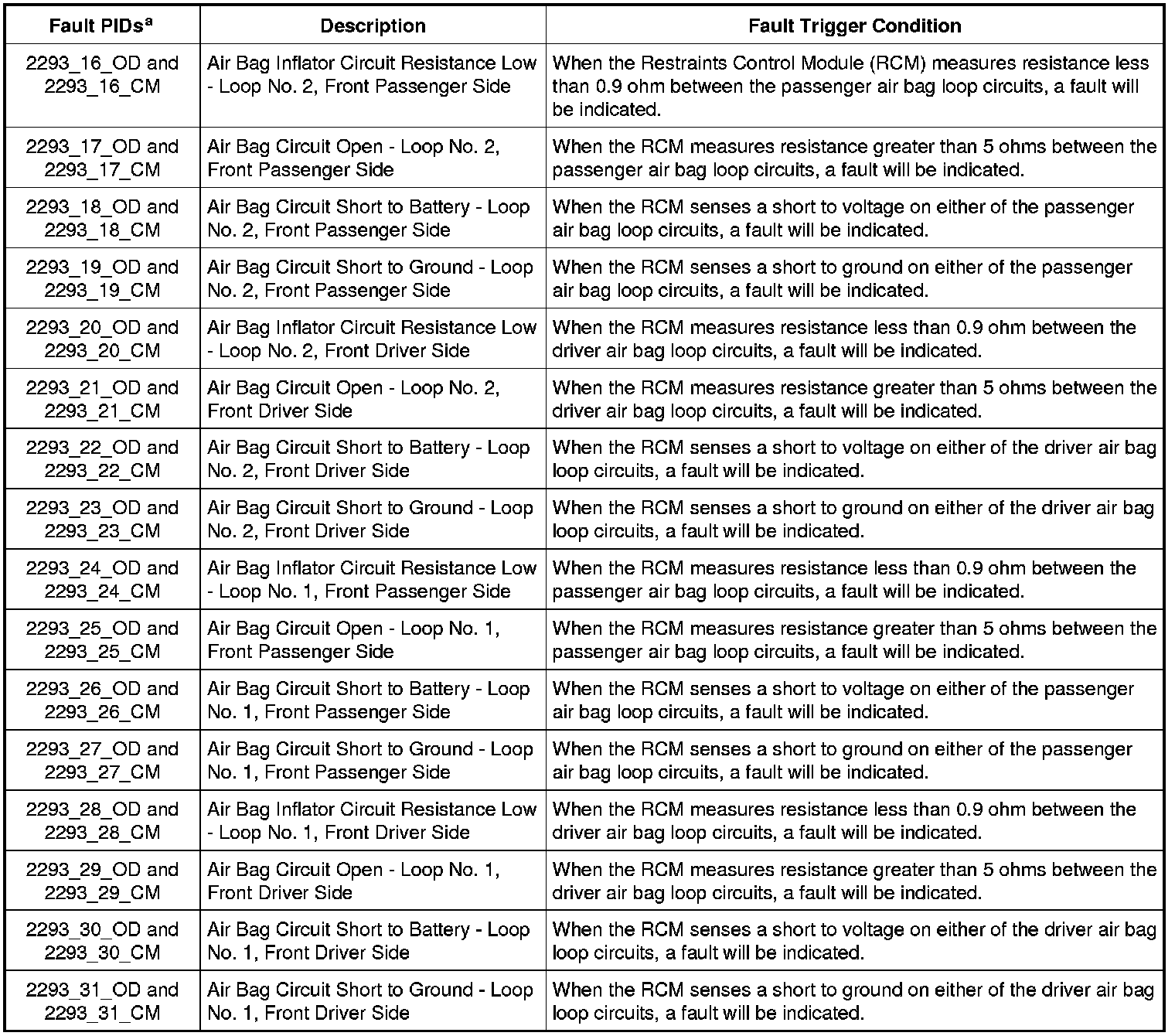 a Fault PIDs that end in OD indicate an on-demand status and are associated with on-demand DTC B2293. Fault PIDs that end in CM indicate continuous memory status and are associated with continuous DTC B2293.