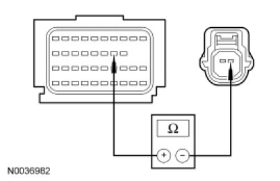 - Measure the resistance between second row driver side impact sensor C3059-1, circuit VR219 (GN/WH), harness side and C3059-2, circuit RR133 (GY/BN), harness side.