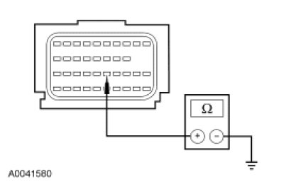 - Measure resistance between RCM C310b-25, circuit CR201 (GN/BU), harness side and ground.