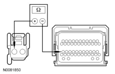 - Measure the resistance between PCM C175B-19, circuit CE336 (GN/WH), harness side and PCM C175B-10, circuit CDC35 (BU/WH) harness side.