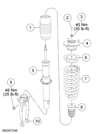 WARNING: Keep all body parts clear of shock absorbers or strut rods. Shock absorbers or struts can extend unassisted. Failure to follow this instruction may result in serious personal injury.