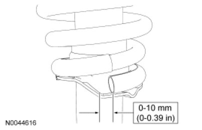 11. NOTE: Before tightening the shock absorber rod nut, position the end of the spring within 0-10 mm (0-0.39 in) of the step on the spring mount.