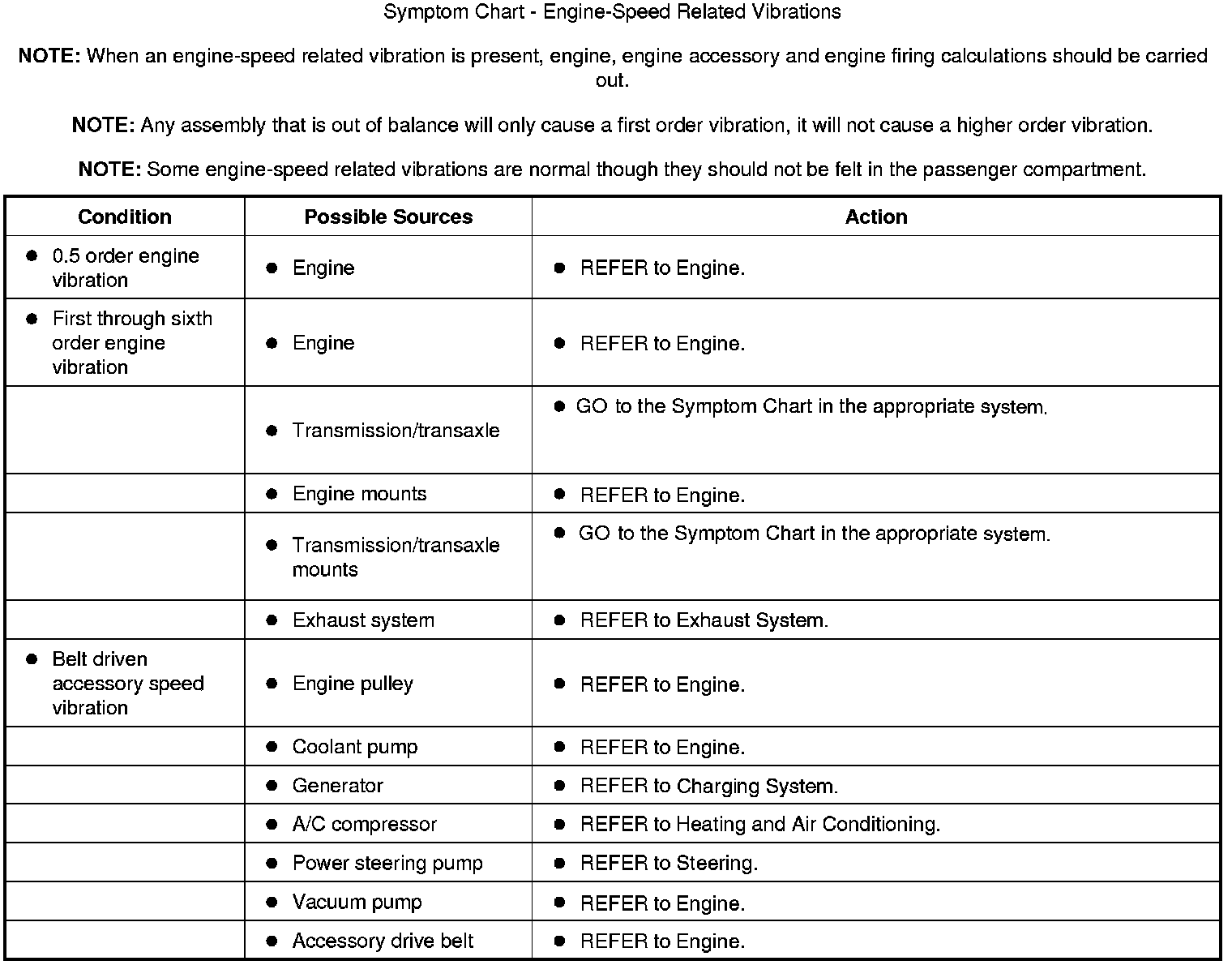 Symptom Chart - Engine-Speed Related Vibrations: