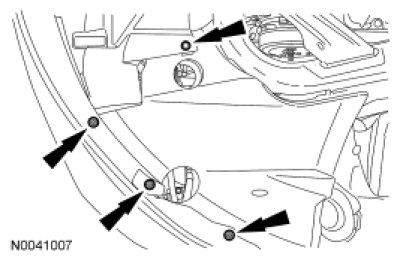26. Position the LH fender splash shield in place and install the 4 screws.