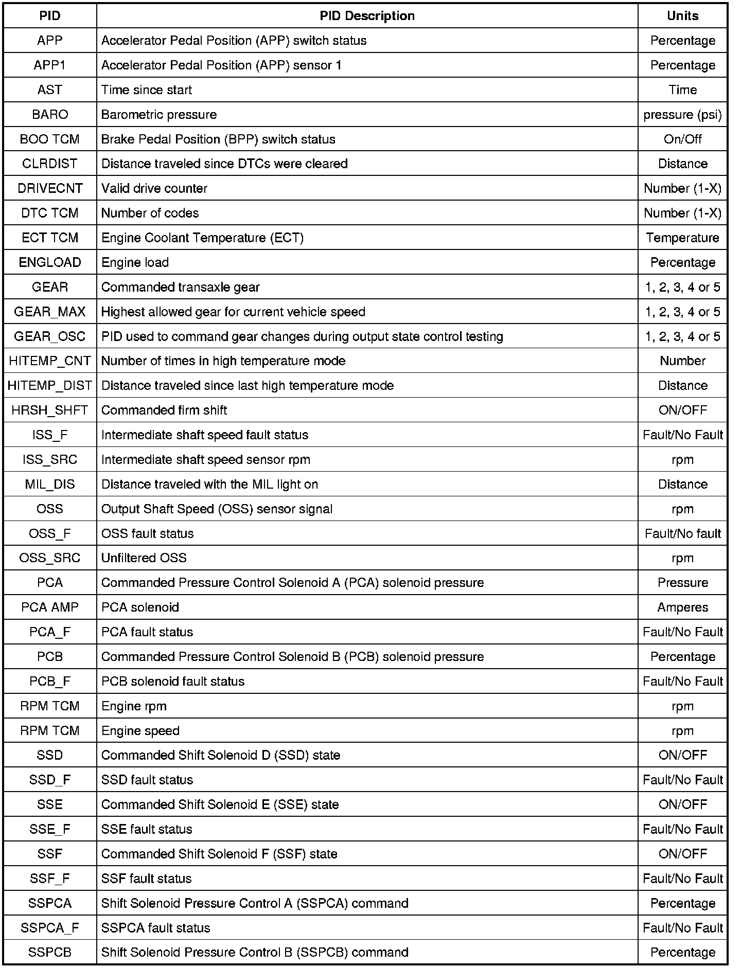 To confirm that the output state control value was sent by the scan tool and the PCM has accepted the output state control substitution, a corresponding PID for each output state control parameter must be monitored. Additional PIDs should be monitored to help the technician adequately diagnose the transmission.