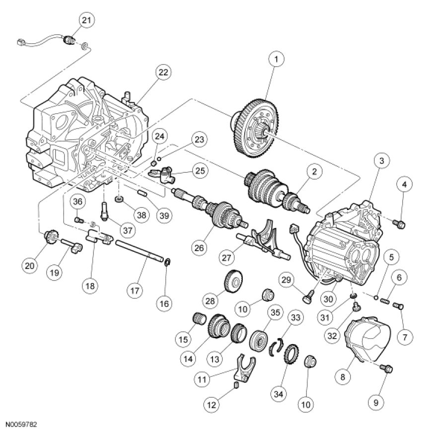 - Tighten the reverse idler shaft bolt to 22 Nm (16 lb-ft).