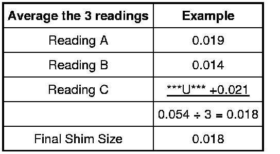 - Take and record 3 readings within 0.10 mm (0.004 in) of each other. Use the formula below to select the correct shim size.