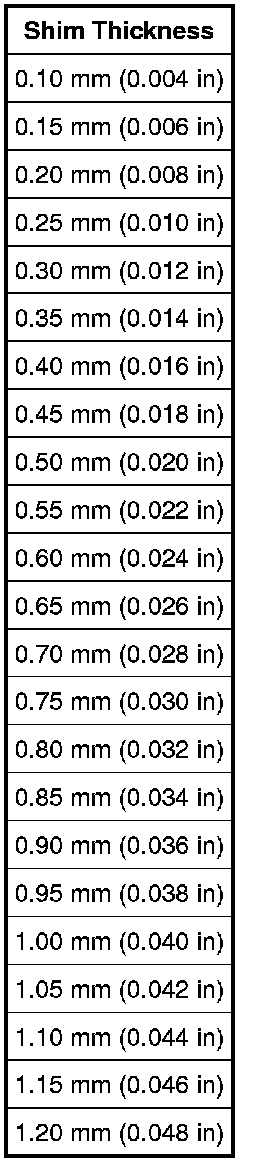 From the Shim Selection Set, select the shim(s) that is closest to (or slightly thinner than) the final shim size calculated in the previous step.