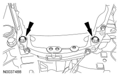 18. Tighten the transaxle lower mount nuts and bolt to specification.