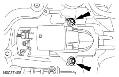 9. Tighten the starter motor bolts to specification.