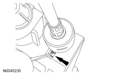 3. NOTICE: Carefully disconnect the cable from the shift lever base. Do not damage the shift cable retainers.