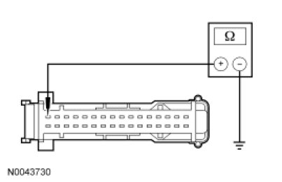 - Measure the resistance between SJB C2280D-16, circuit CH122 (WH/OG), harness side and ground.