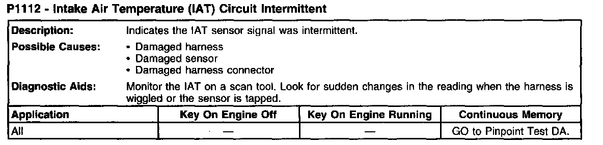 P1112 - Intake Air Temperature (IAT) Circuit Intermittent: