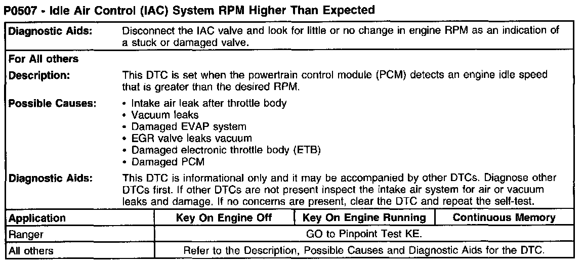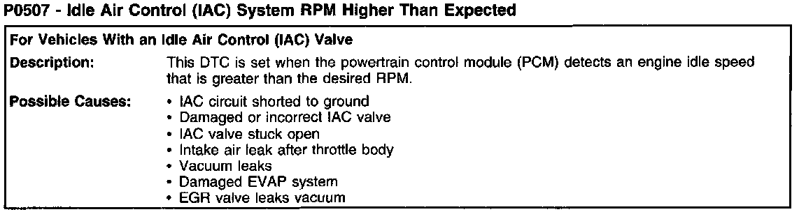 P0507 - Idle Air Control (IAC) System RPM Higher Than Expected (Part 1):
