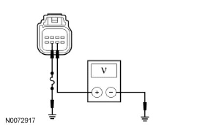 - Measure the voltage between the keyless entry keypad C530-6, circuit CPK28 (WH/GN), harness side and ground while connecting a fused jumper wire between the keyless entry keypad C530-7, circuit CPK29 (GY/BU), harness side and ground.