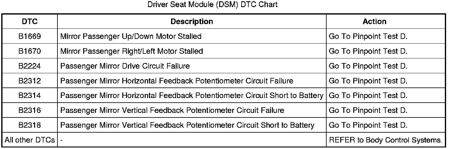 Driver Seat Module (DSM) DTC Chart