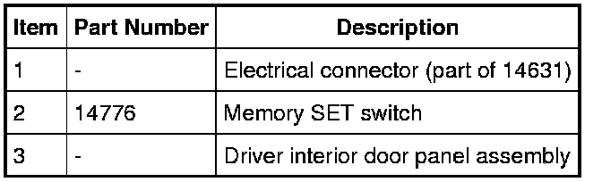 Disconnect the electrical connector, release the 4 tabs and remove the memory SET switch.