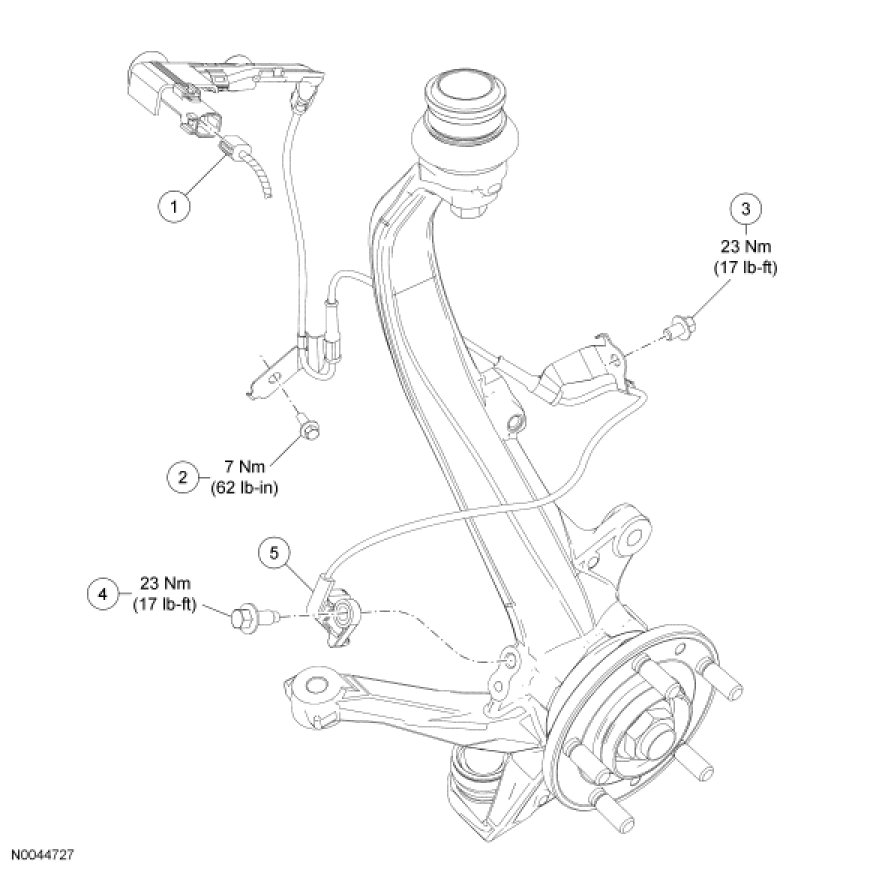 - Tighten the bracket-to-wheel knuckle bolt to 23 Nm (17 lb-ft).