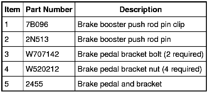5. Remove the 4 brake pedal bracket nuts and the brake pedal and bracket assembly.