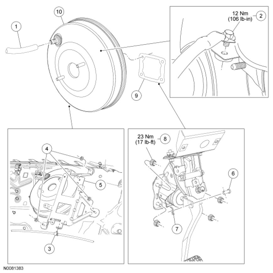 - Tighten the booster push rod jam nut to 17 Nm (150 lb-in).