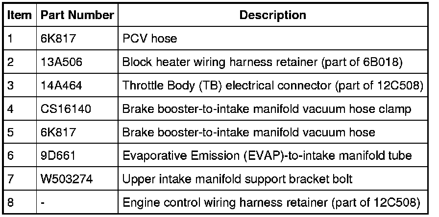 1. NOTICE: If the engine is repaired or replaced because of upper engine failure, typically including valve or piston damage, check the intake manifold for metal debris. If metal debris is found, install a new intake manifold. Failure to follow these instructions can result in engine damage.