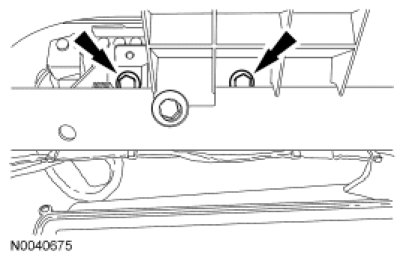 13. Through the glove compartment opening, install the 2 passenger air bag module bolts.