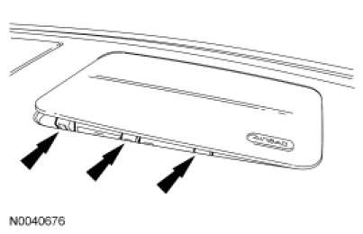 12. NOTICE: Do not handle the passenger air bag module by grabbing the edges of the deployment doors. Damage to the passenger air bag module may occur.