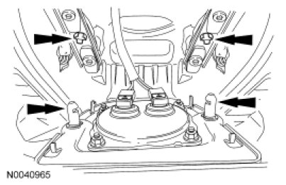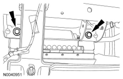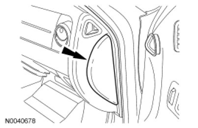 14. NOTE: Illustration shows the location of the 5 RH instrument panel trim panel nuts located inside of the instrument panel.