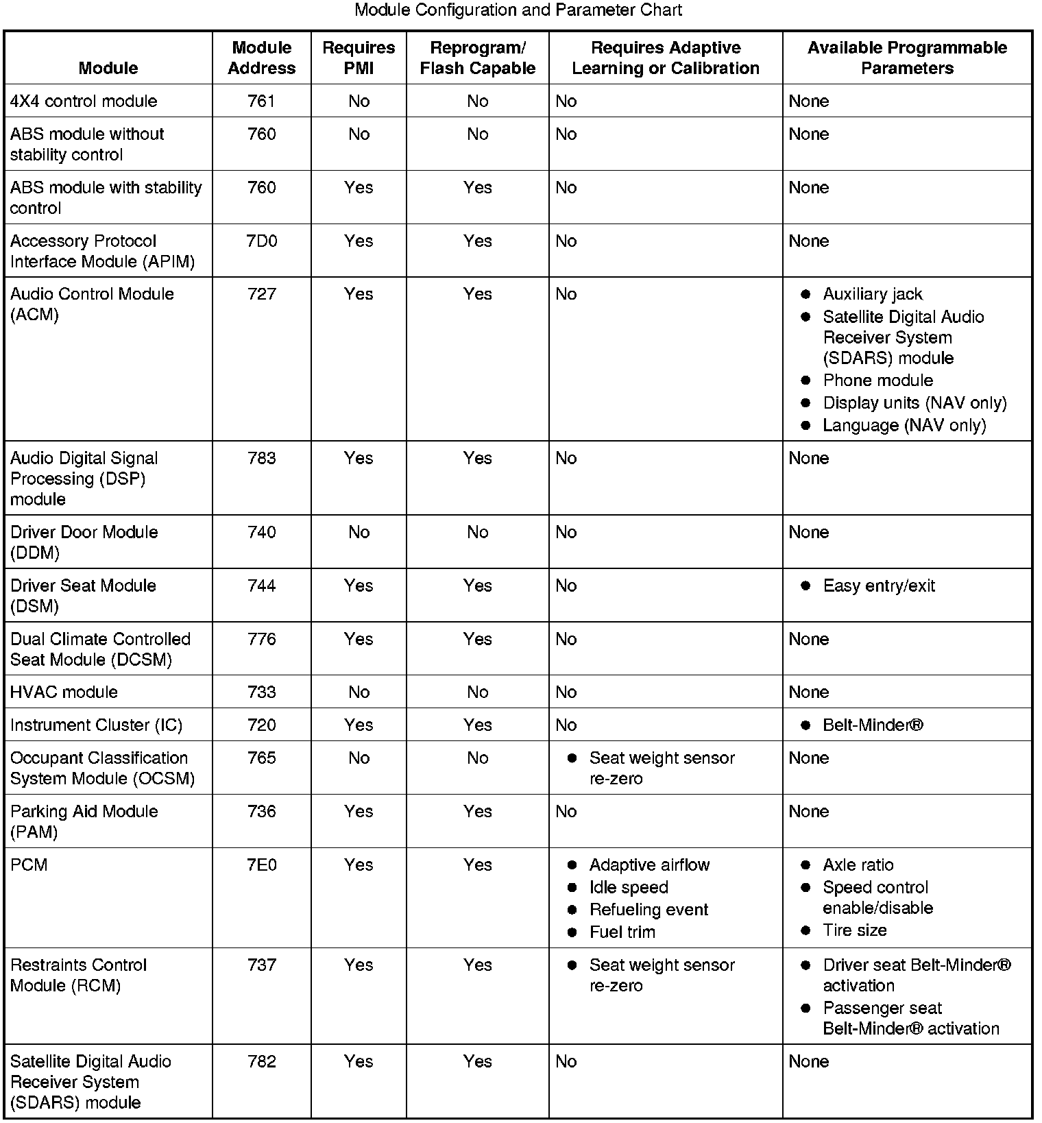 Programmable parameters are customer preference items that may be modified by the dealer via scan tool or in some cases modified by the customer following a procedure listed in the vehicle Owner's Literature. While many configuration options may exist for a module, only a few of these options are programmable parameters.