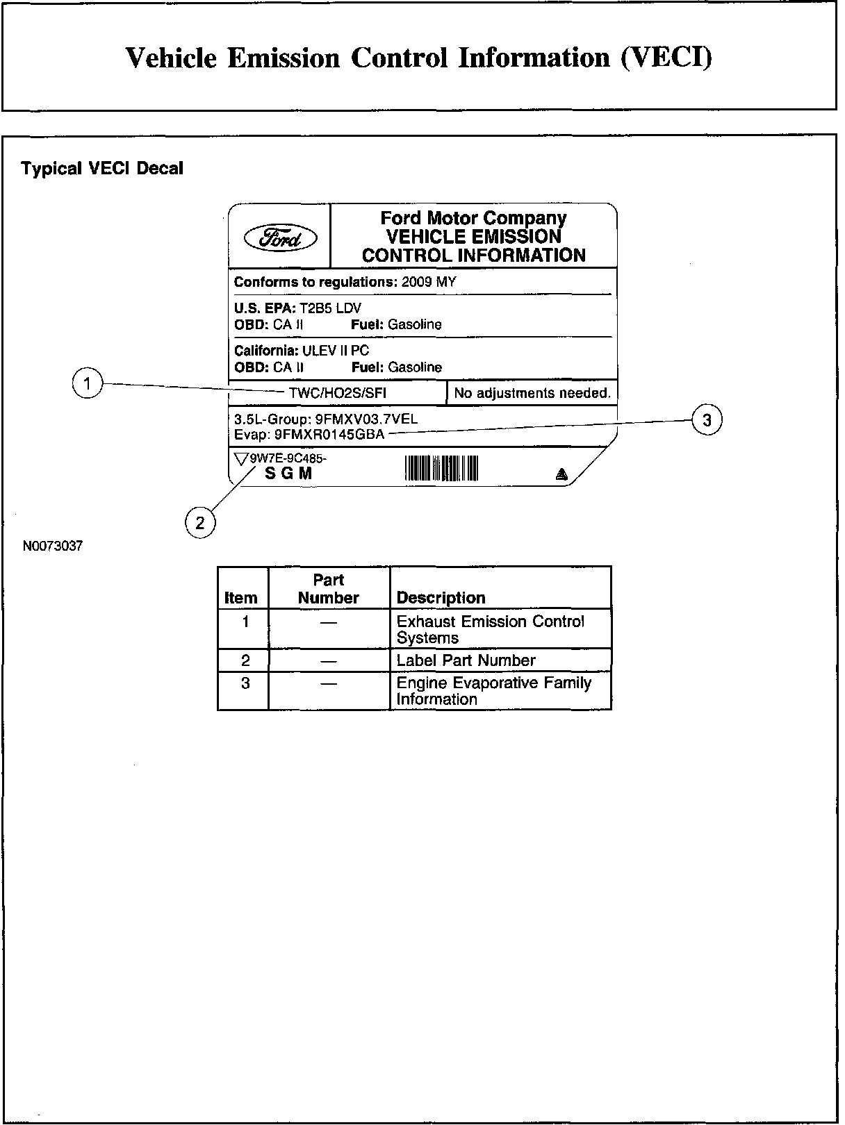 Each vehicle has a VECI decal containing emission control information that applies specifically to the vehicle and engine. The specifications on the decal are critical to repairing the emissions systems.