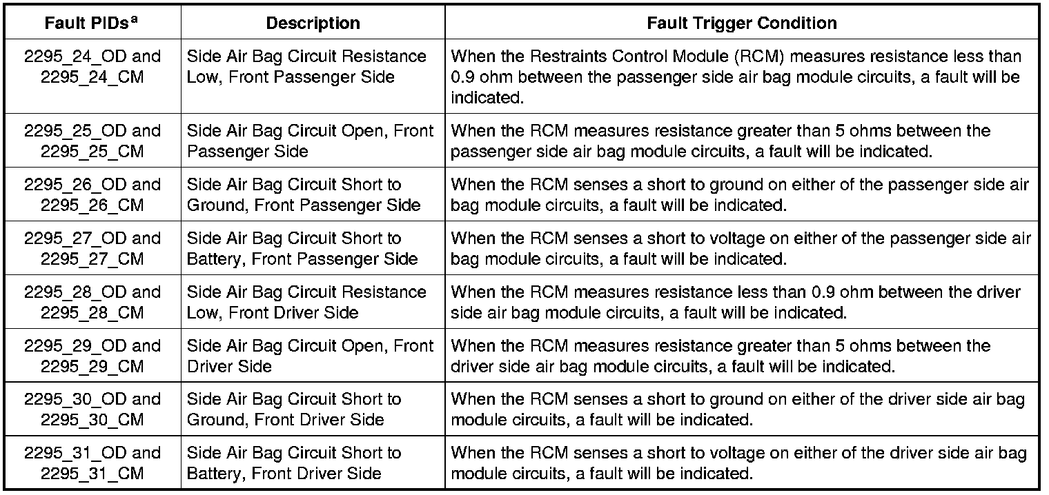 a Fault PIDs that end in OD indicate an on-demand status and are associated with on-demand DTC B2295. Fault PIDs that end in CM indicate continuous memory status and are associated with continuous DTC B2295.
