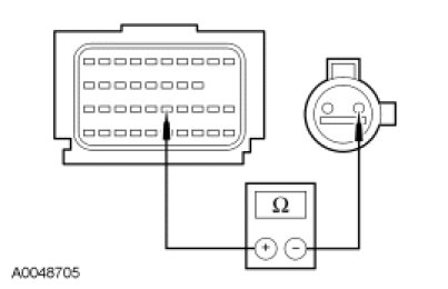 - Measure resistance between RCM C310b-25, circuit CR201 (BU/OG), harness side and driver safety belt buckle switch C3296-2, circuit CR201 (GN/BU), harness side.