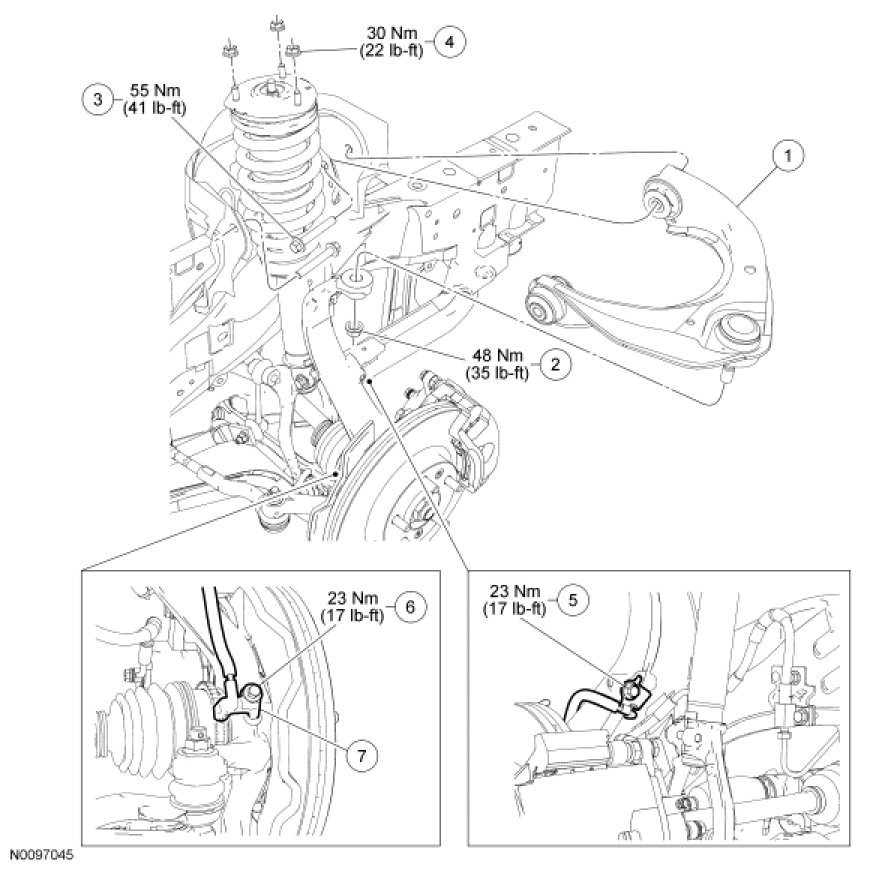 - Tighten to 48 Nm (35 lb-ft).