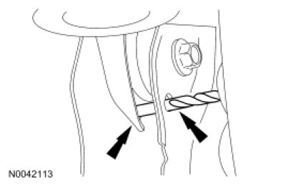 3. Tighten the upper arm-to-body bolts to 55 Nm (41 lb-ft) and remove the drill bit.
