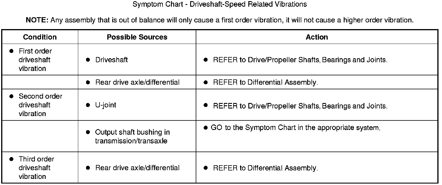 Symptom Chart - Driveshaft-Speed Related Vibrations
