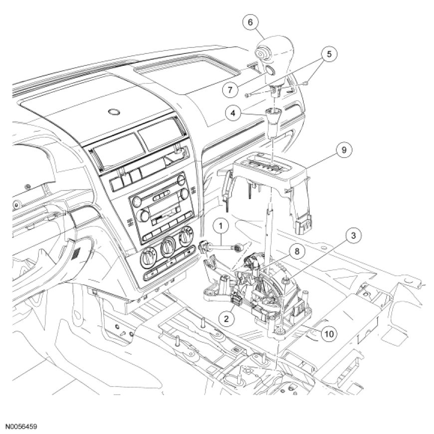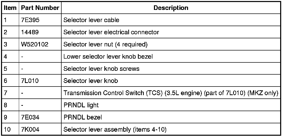 The MKZ Transmission Control Switch (TCS) is a momentary contact switch located on the selector lever knob that allows the driver to cancel the operation of OVERDRIVE.