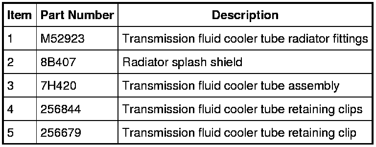 8. Remove the transmission fluid cooler tube retainer and remove the transmission fluid cooler tubes.