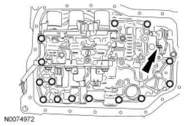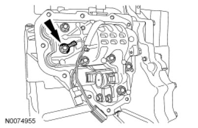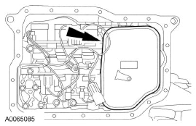 1. Remove the transmission fluid pan. For additional information, refer to Transmission Fluid Pan Service and Repair.