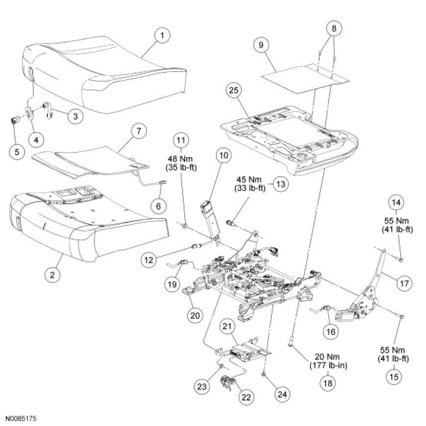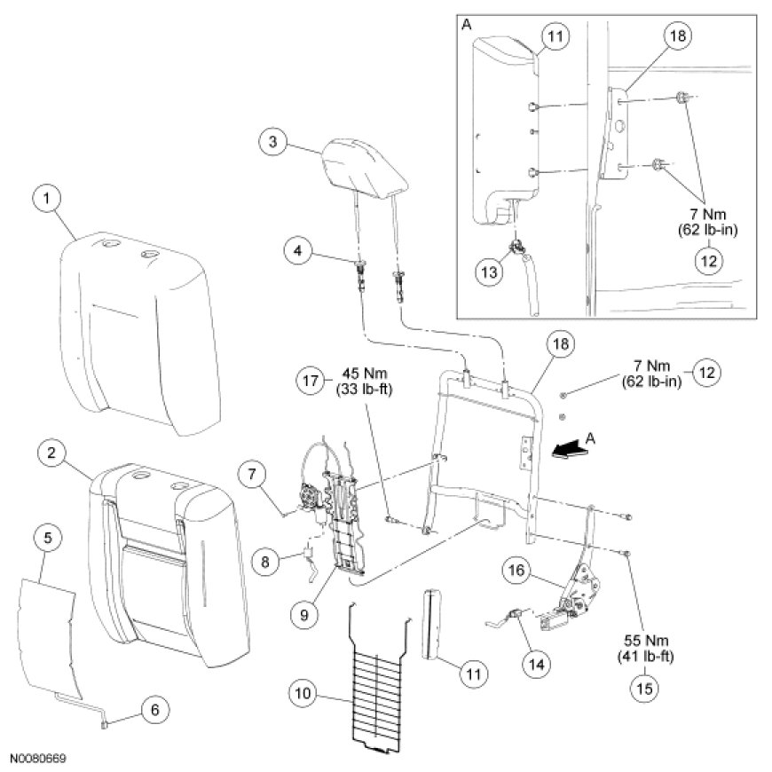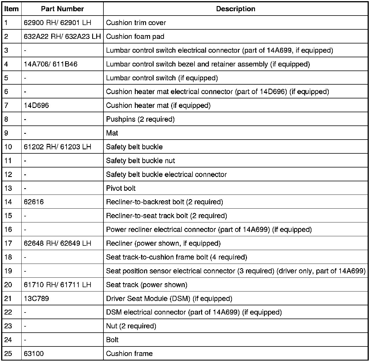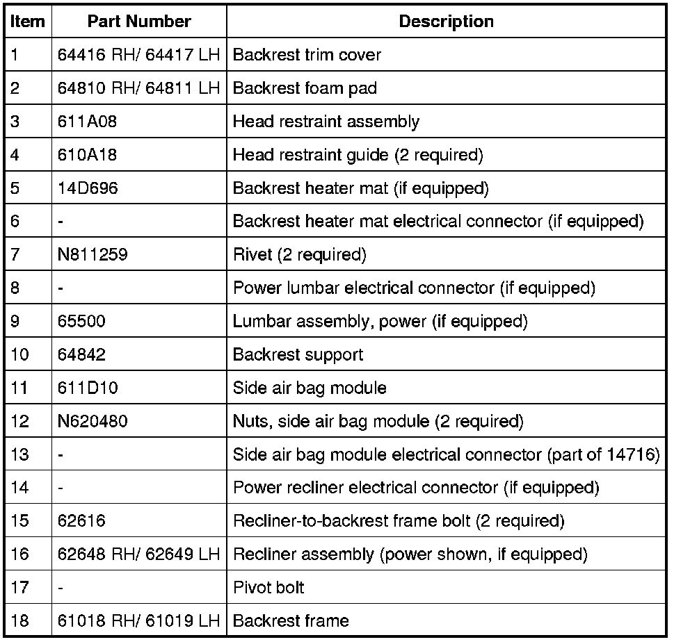 NOTE: Driver seat shown, passenger similar.