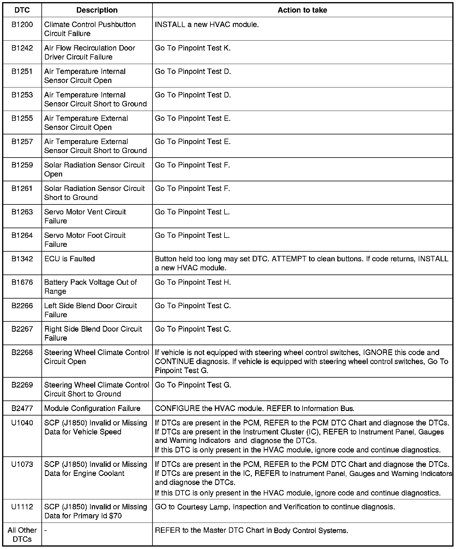 HVAC Module DTC Chart