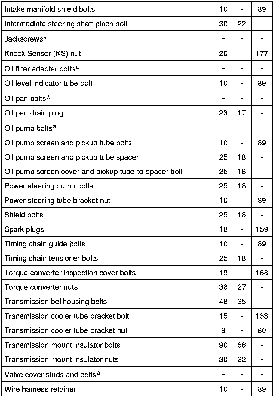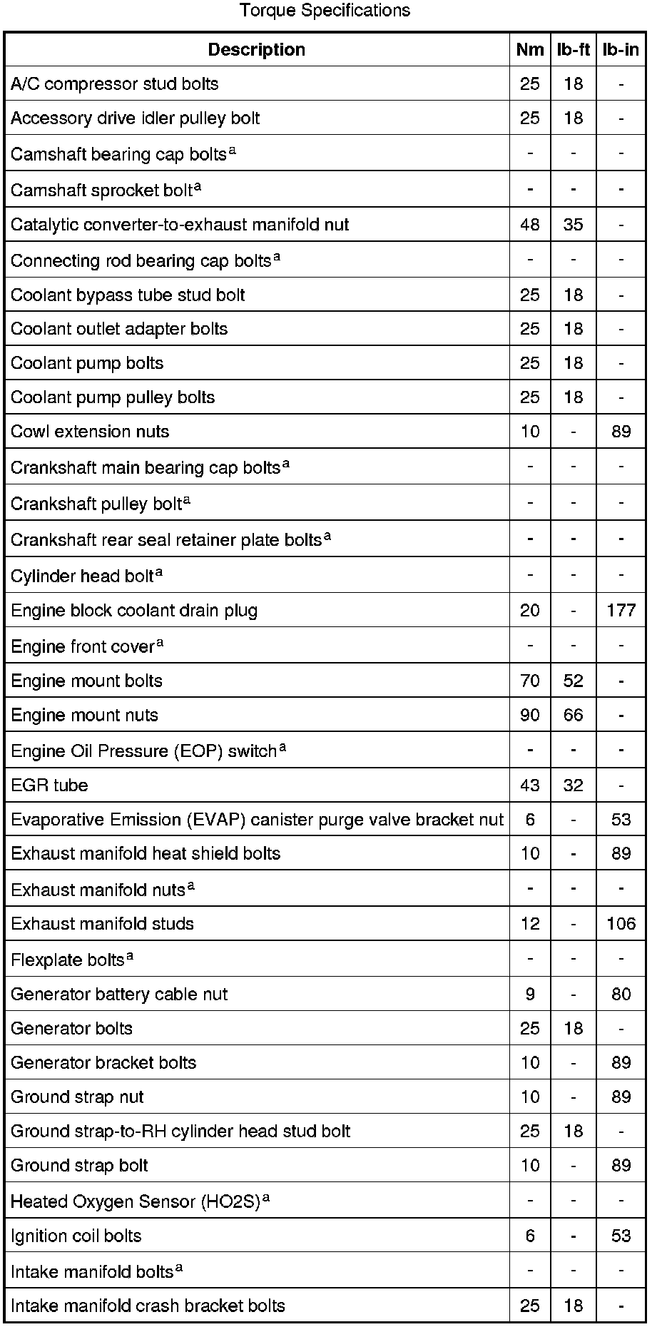 Torque Specifications
