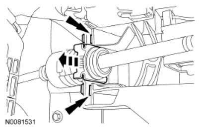- Release the 2 selector cable retaining tabs and pull the selector lever upward.