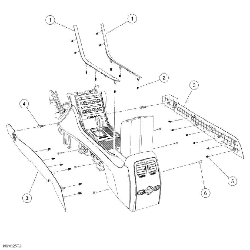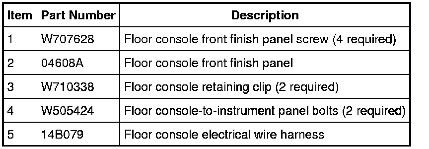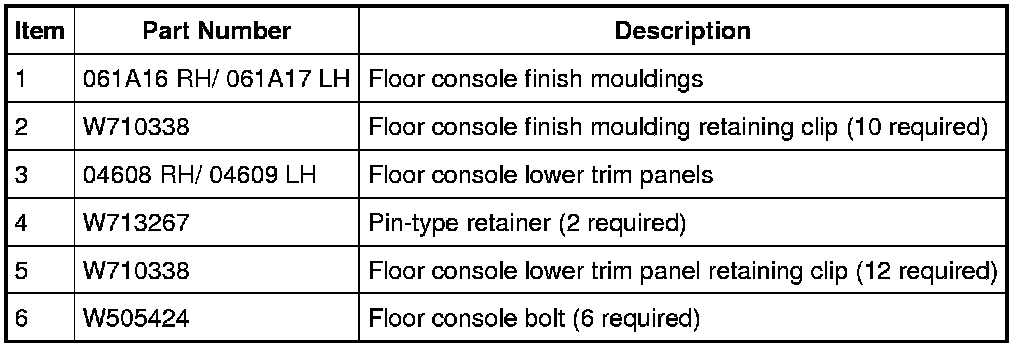 4. NOTE: LH floor console lower trim panel shown, RH floor console lower trim panel similar.
