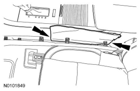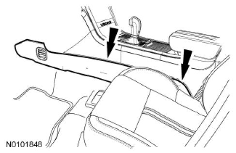 Pull the middle and rear of the LH and RH floor console lower trim panels outward to release the retaining clips.