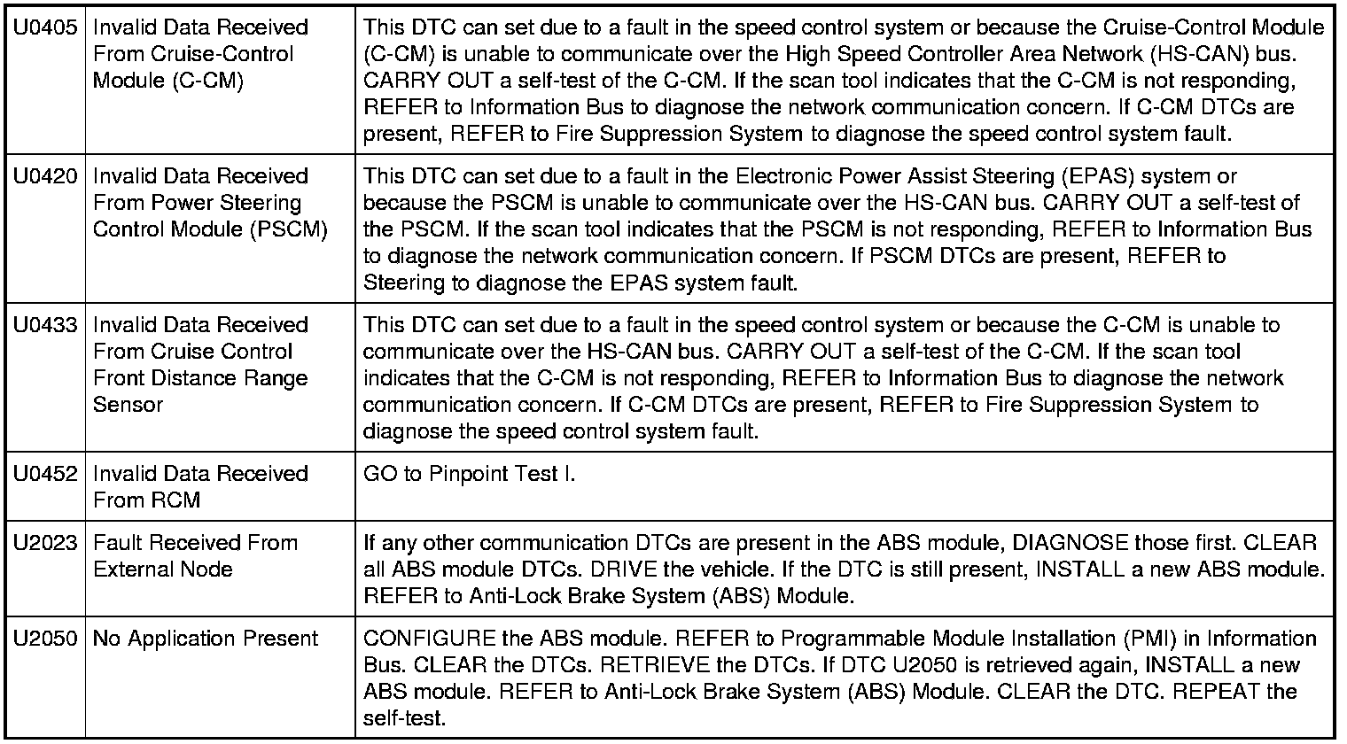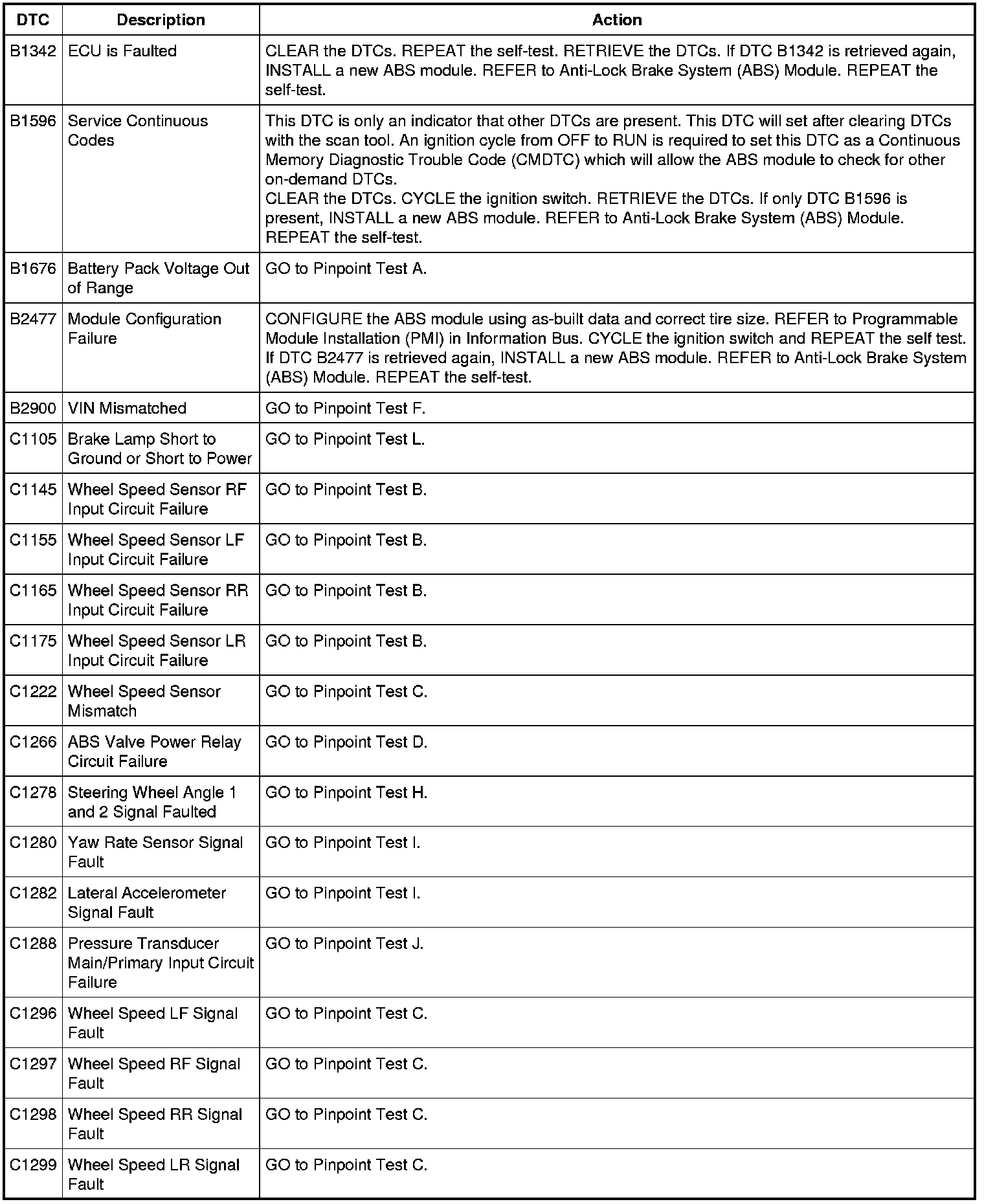 ABS Module DTC Chart