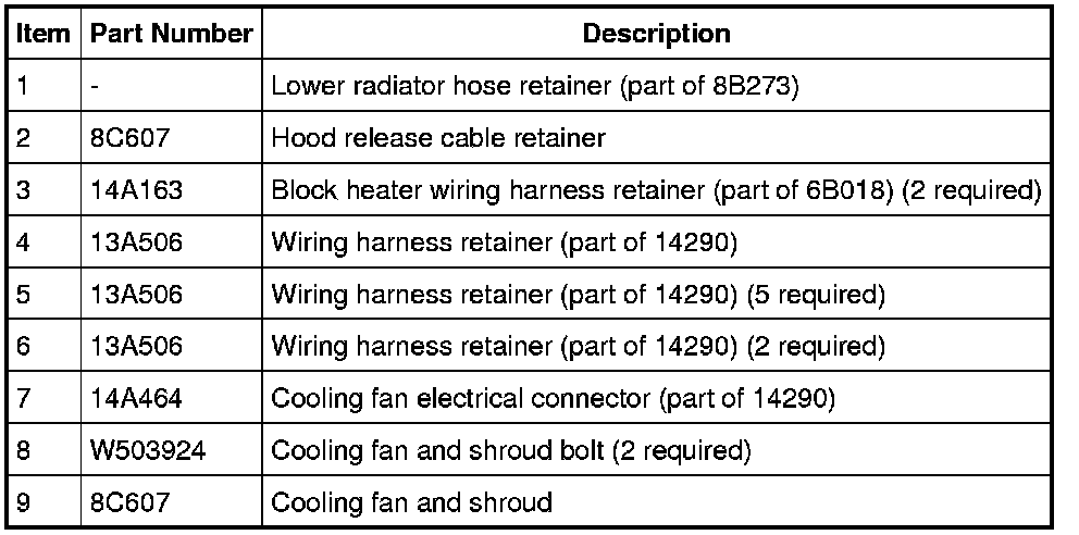 15. Detach all the wiring harness retainers from the cooling fan and shroud and radiator grille support.