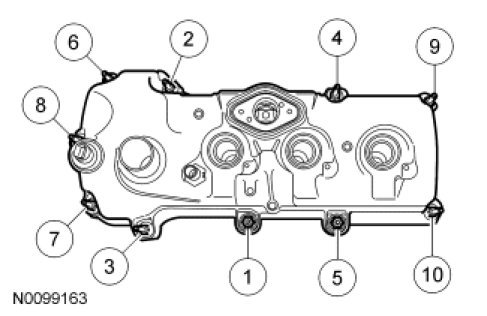 - Tighten in the sequence shown to 10 Nm (89 lb-in).