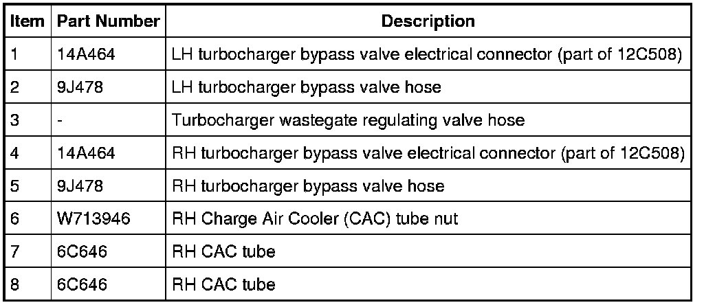 12. Disconnect the LH turbocharger bypass valve hose from the RH CAC tube.